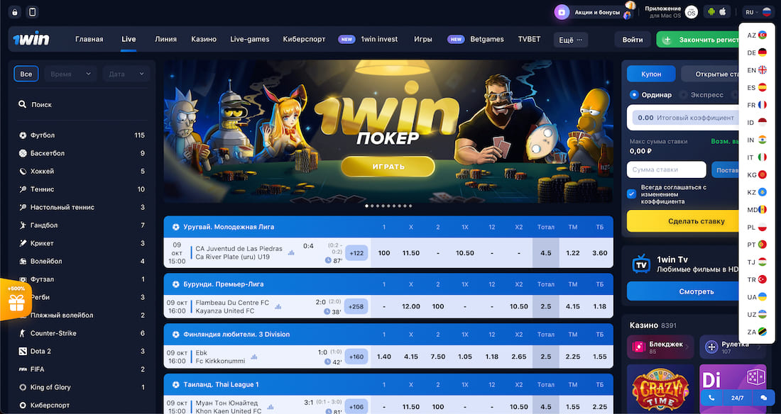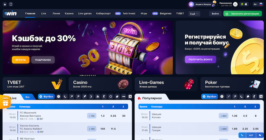 Бонусные предложения от бк и Casino предлагают игрокам возможность увеличить депозит. Компания 1вин, предлагающая платформы для гемблинга и беттинга, не является исключением. Бонус без депозита отсутствует, но у 1вин есть щедрое приветственное предложение в 500%, а также промокоды на фрибеты и фриспины.